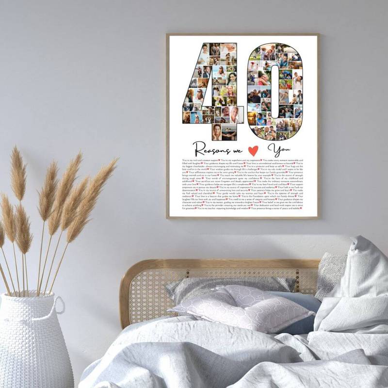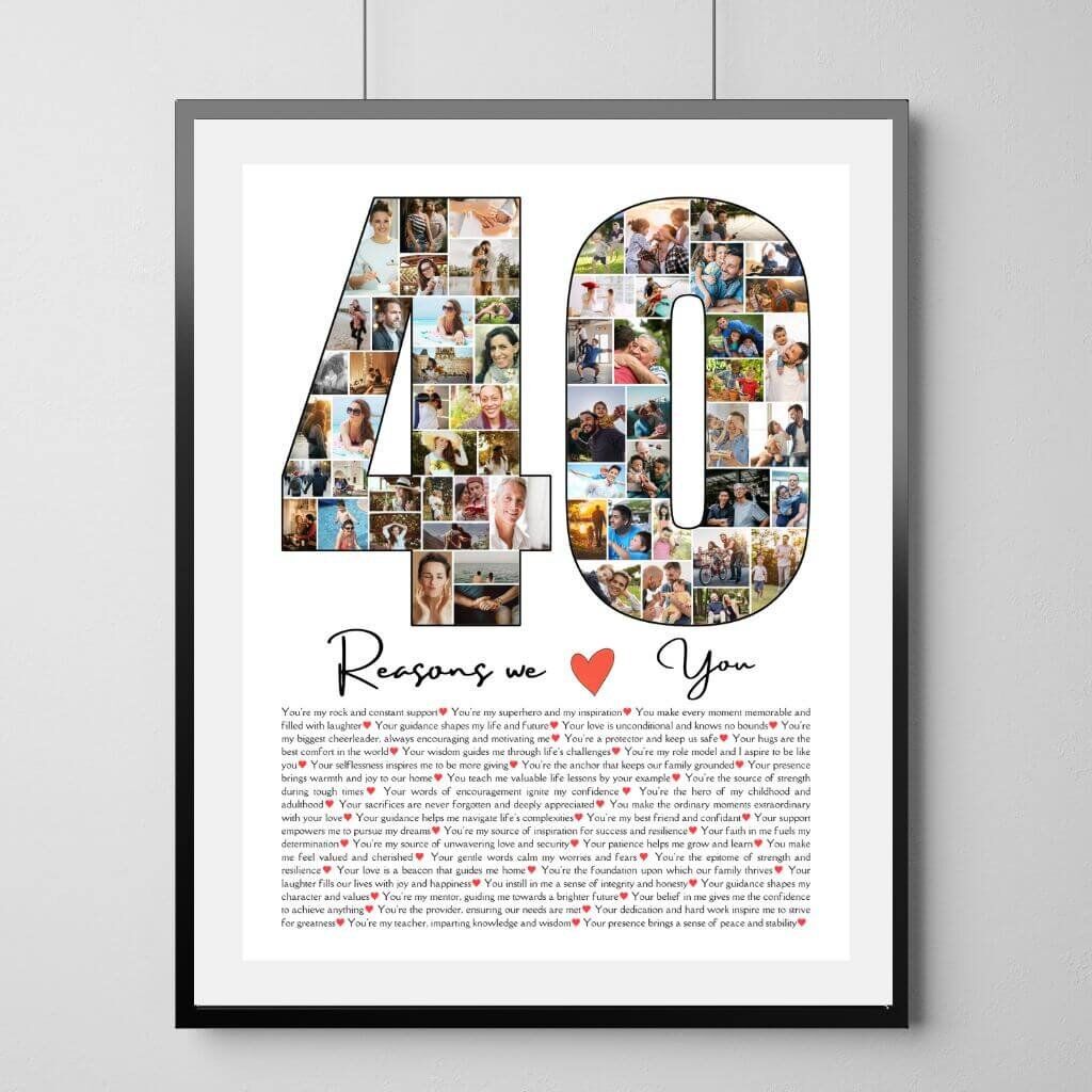 Celebrate life’s big moments with this **40 Reasons We Love You Collage Template**! Whether it’s a **40th birthday, ruby anniversary (40 years)**, or a heartfelt Valentine’s gift, this Canva template makes it easy to create a personalized keepsake.