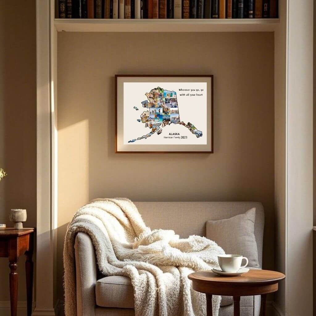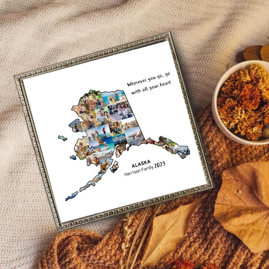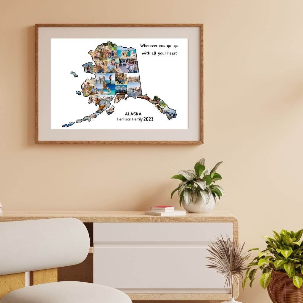 Designed by CollageWizard, the Alaska map collage offers a timeless way to remember places that feel truly extraordinary.