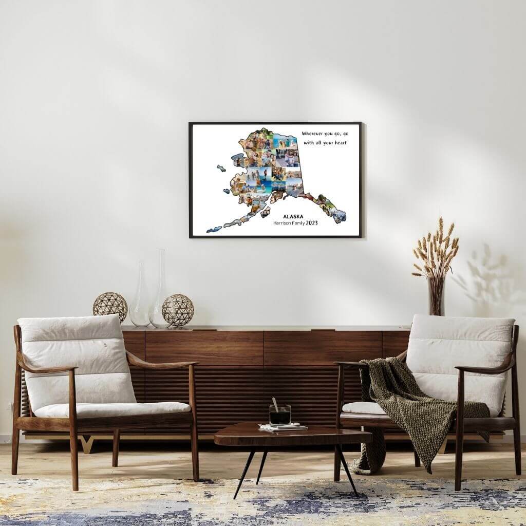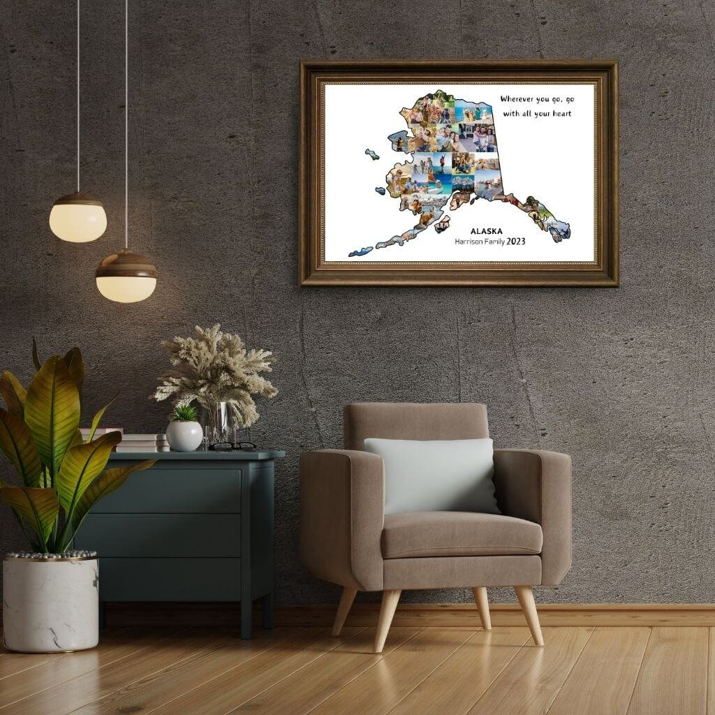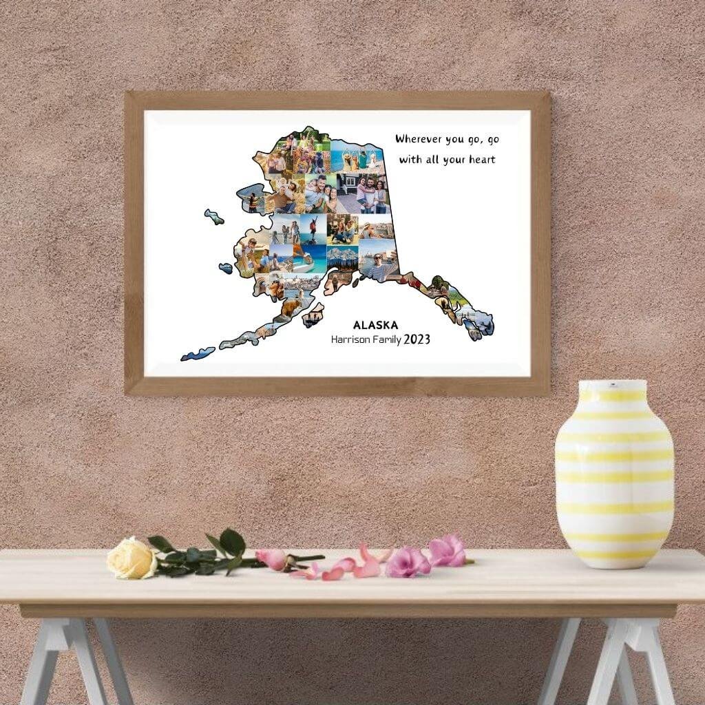 Designed by CollageWizard, the Alaska map collage offers a timeless way to remember places that feel truly extraordinary.