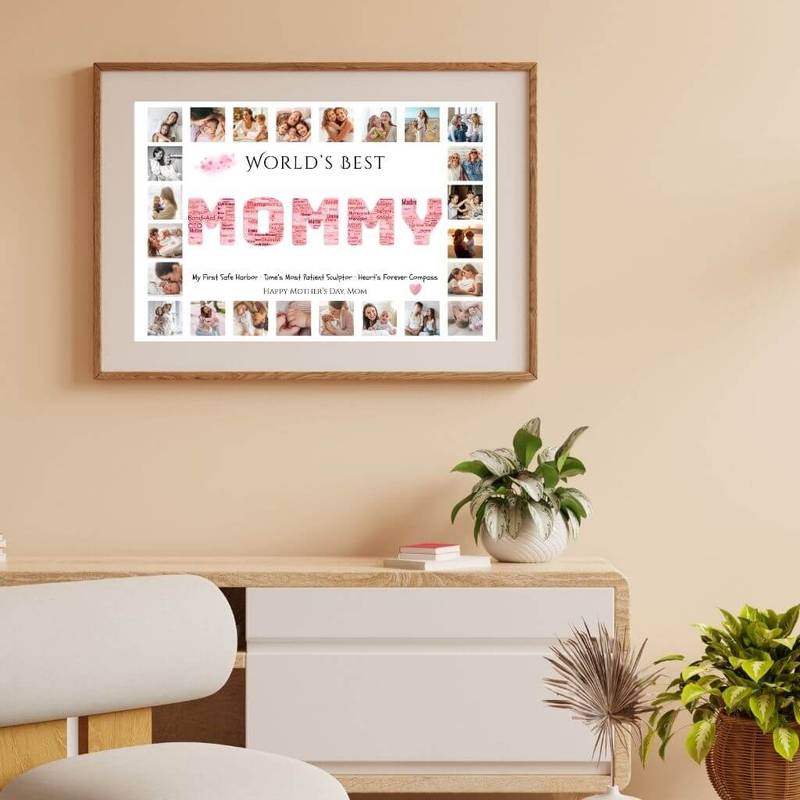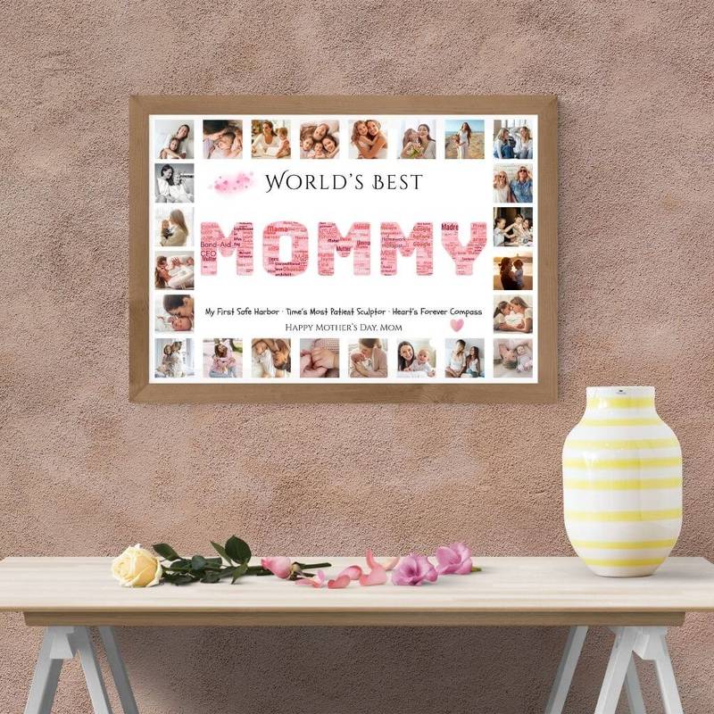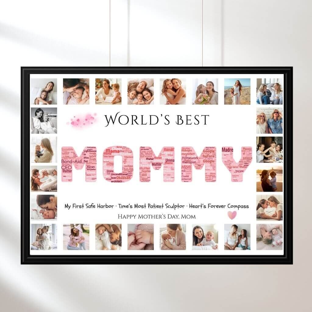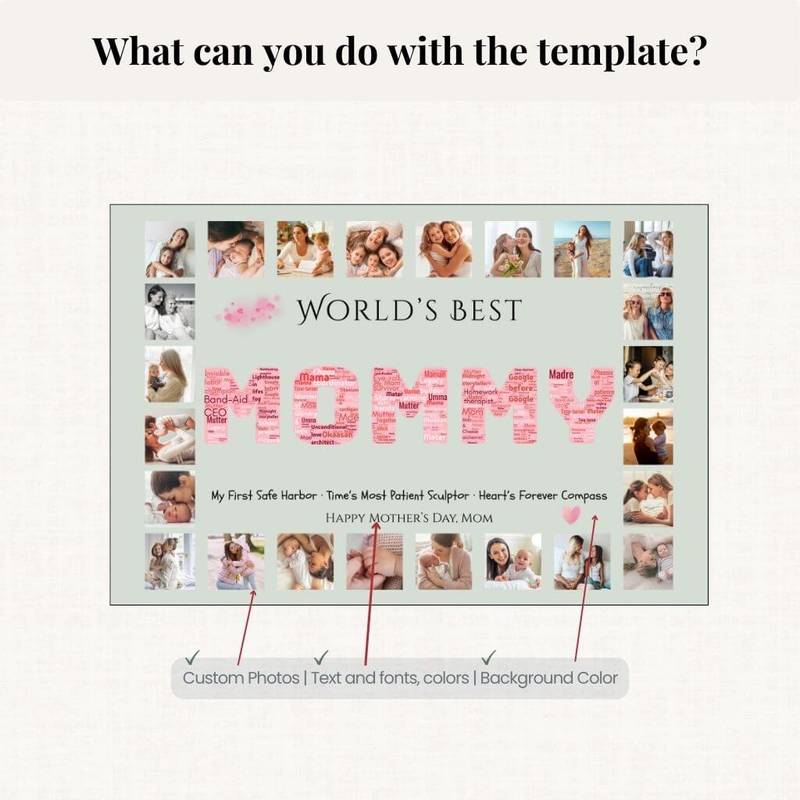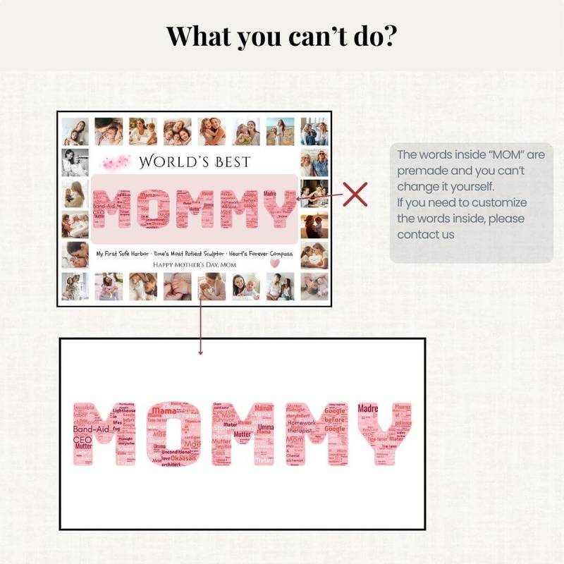 Custom MOMMY Word Art & Photo Collage Template | 24-Frame Family Memory Maker | Pink Classic Design