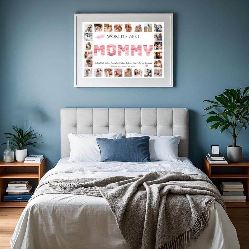 Central “MOMMY” Word Art: Fill each letter with 50+ curated praise words (Chaos Coordinator, First Teacher)
