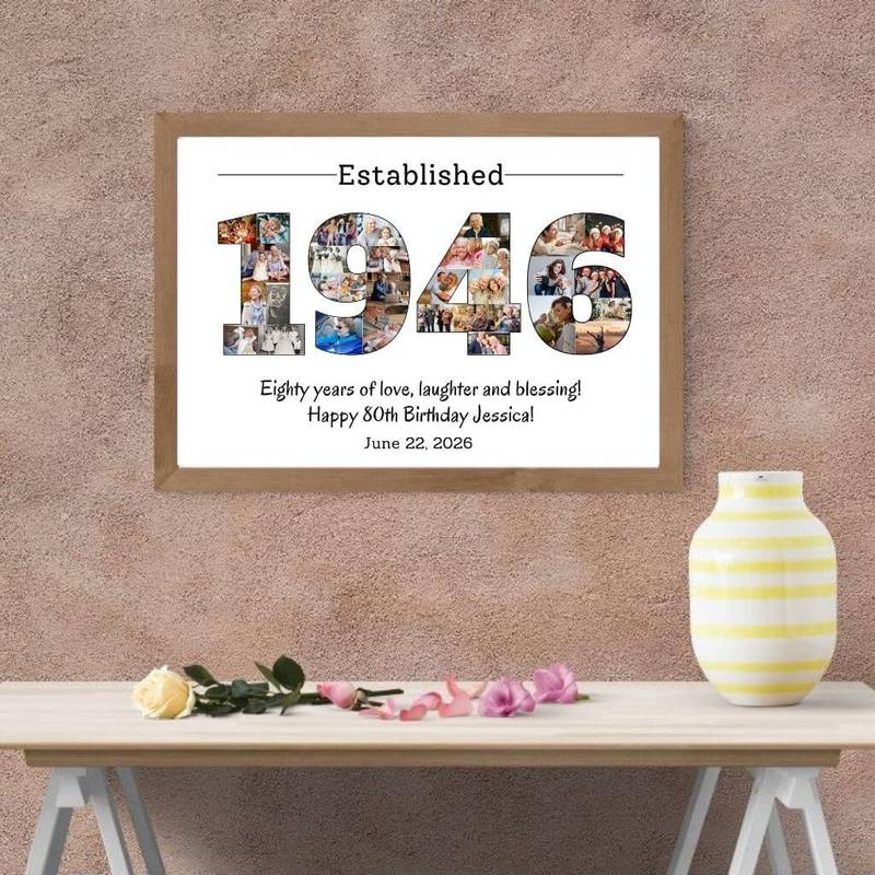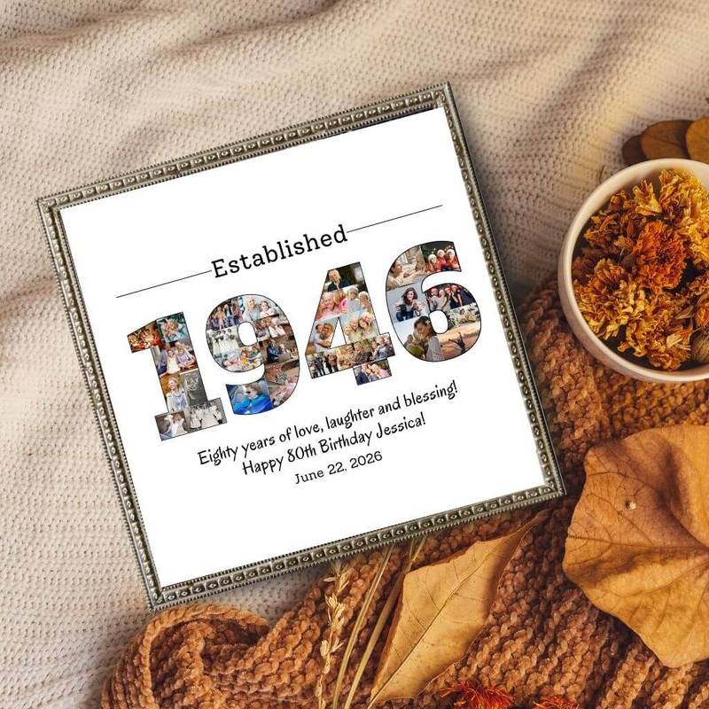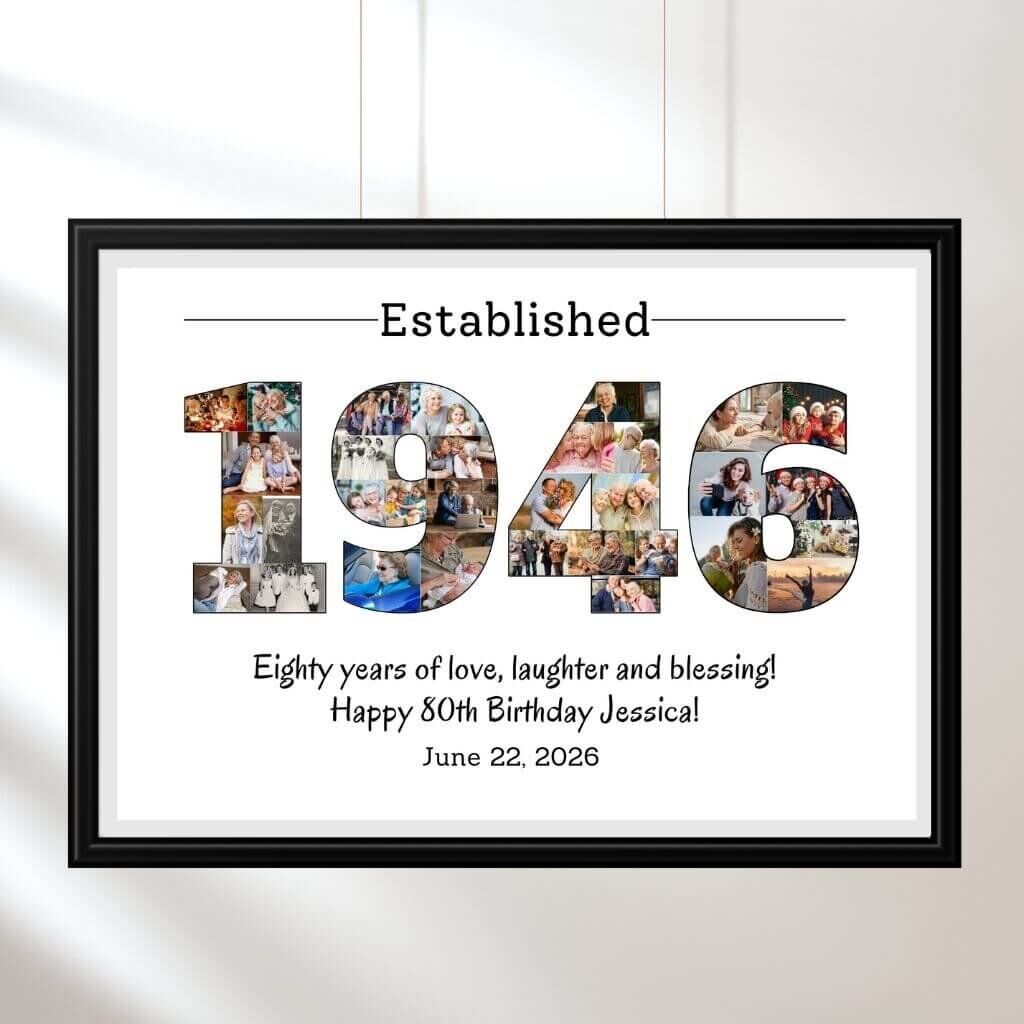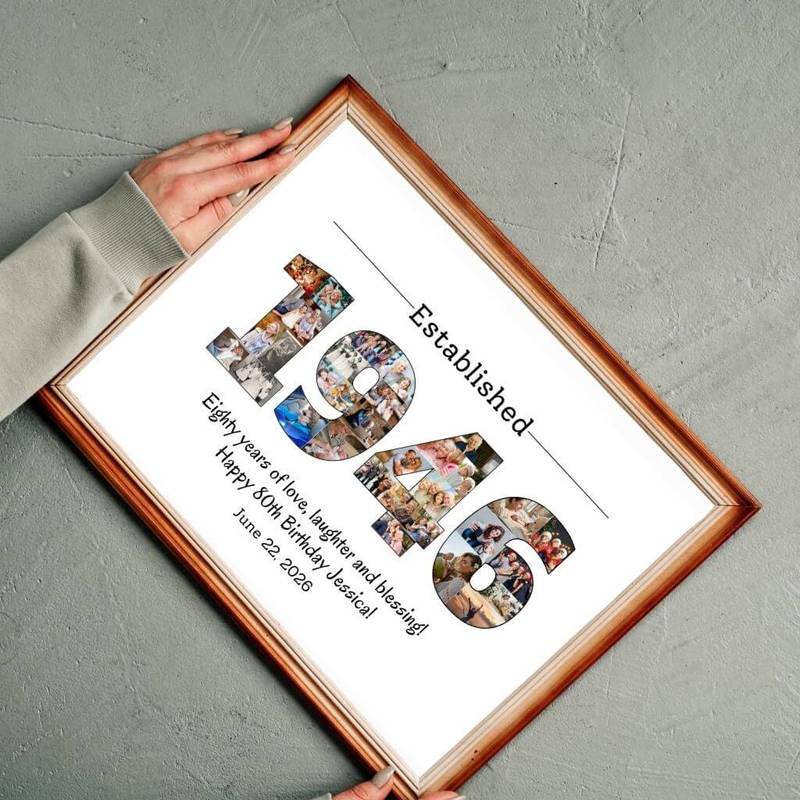 The 1946 Photo Collage Template by CollageWizard is designed to honor this meaningful birth year through a thoughtful visual arrangement of personal photos. The year anchors the design, while each image reflects moments gathered across a lifetime.