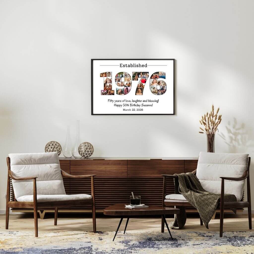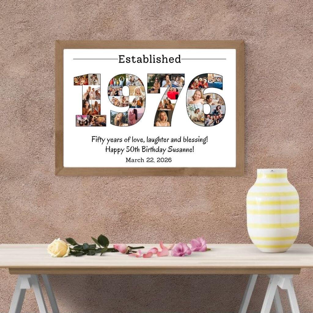 The 1976 Photo Collage Template by CollageWizard is designed to reflect a life shaped by evolving times. Centered around the birth year, the layout allows personal photos to tell a story of growth, resilience, and transformation.