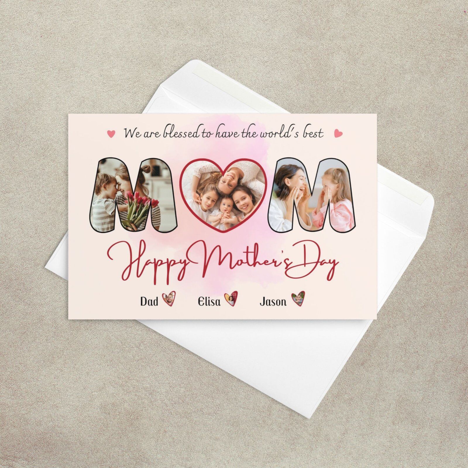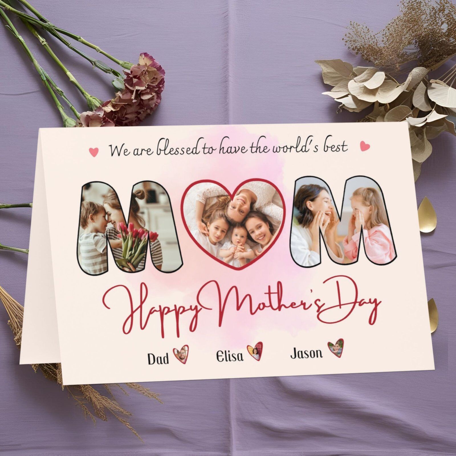 Mother’s Day Card, Worlds’ Best Mom, Custom MOM Photo Collage Card, Greeting Card Gift for Mom, Custom Mother’s Day Gift