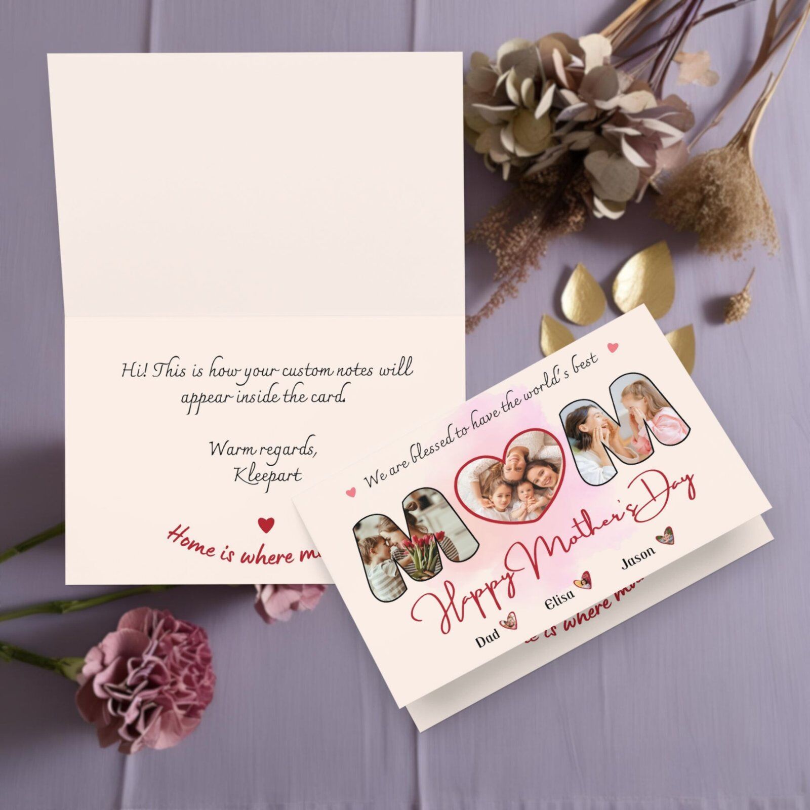 Bottom: “Happy Mother’s Day” + Custom names (e.g., “Dad, Emma & Liam”)