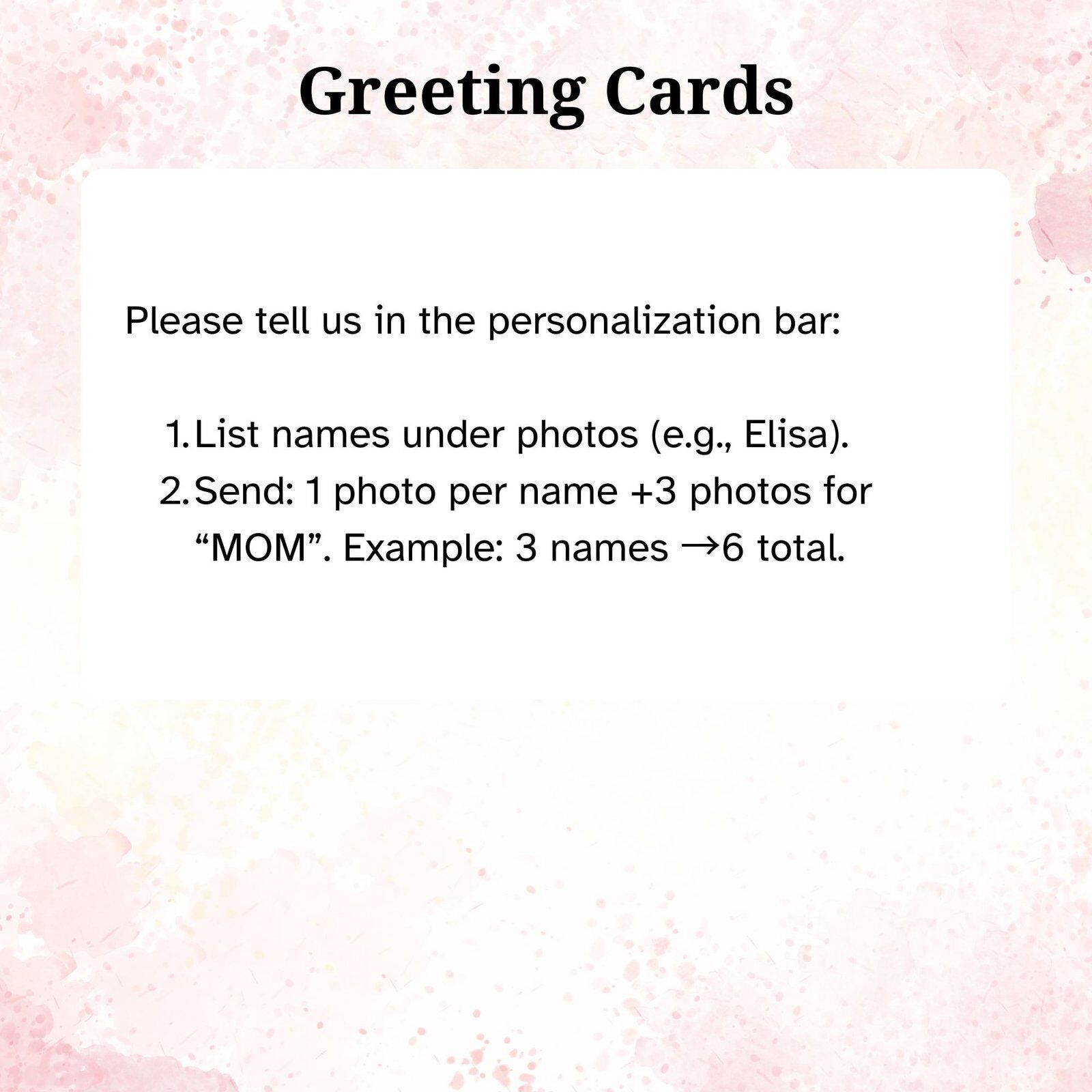2. Upload: 1 photo per name +3 photos for “MOM”. Example: 3 names →6 total.