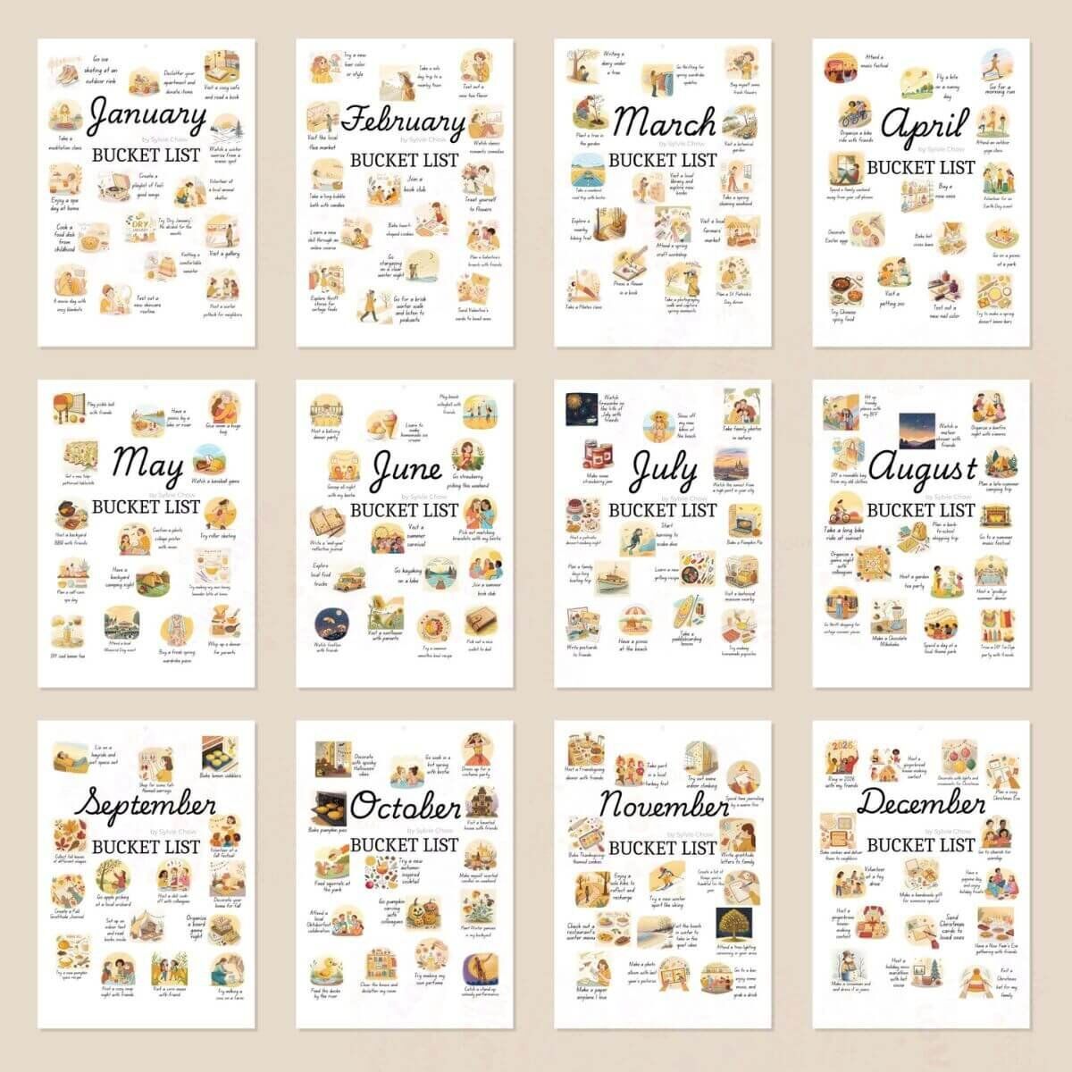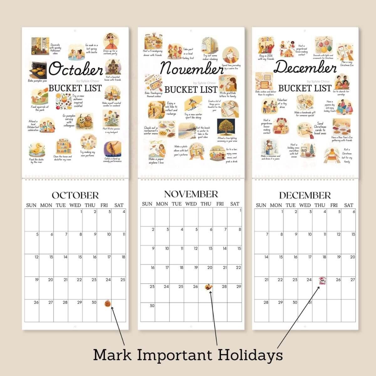👌The Bucket List Calendar is meticulously designed to enable you to fully embrace the charm of each season, imbuing every month with profound meaning. Each page is adorned with a beautiful print that, upon the conclusion of the month, can be delicately cut out and used to grace your home, adding a touch of beauty and warmth for years to come.