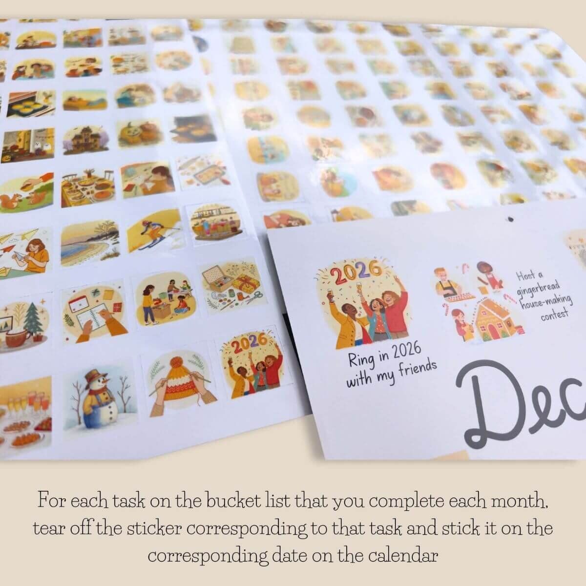 👌To make your experience even more engaging and interactive, we’ve included a set of 180 vibrant, high – quality stickers. These stickers, uniquely designed for each task on the bucket list, are not only visually appealing but also crafted with premium materials that ensure they adhere firmly to the calendar pages without leaving any residue when removed. They serve as a tangible and fun way to mark your achievements as you complete each item on your bucket list, adding a delightful personal touch to your journey of self – discovery and goal – setting.