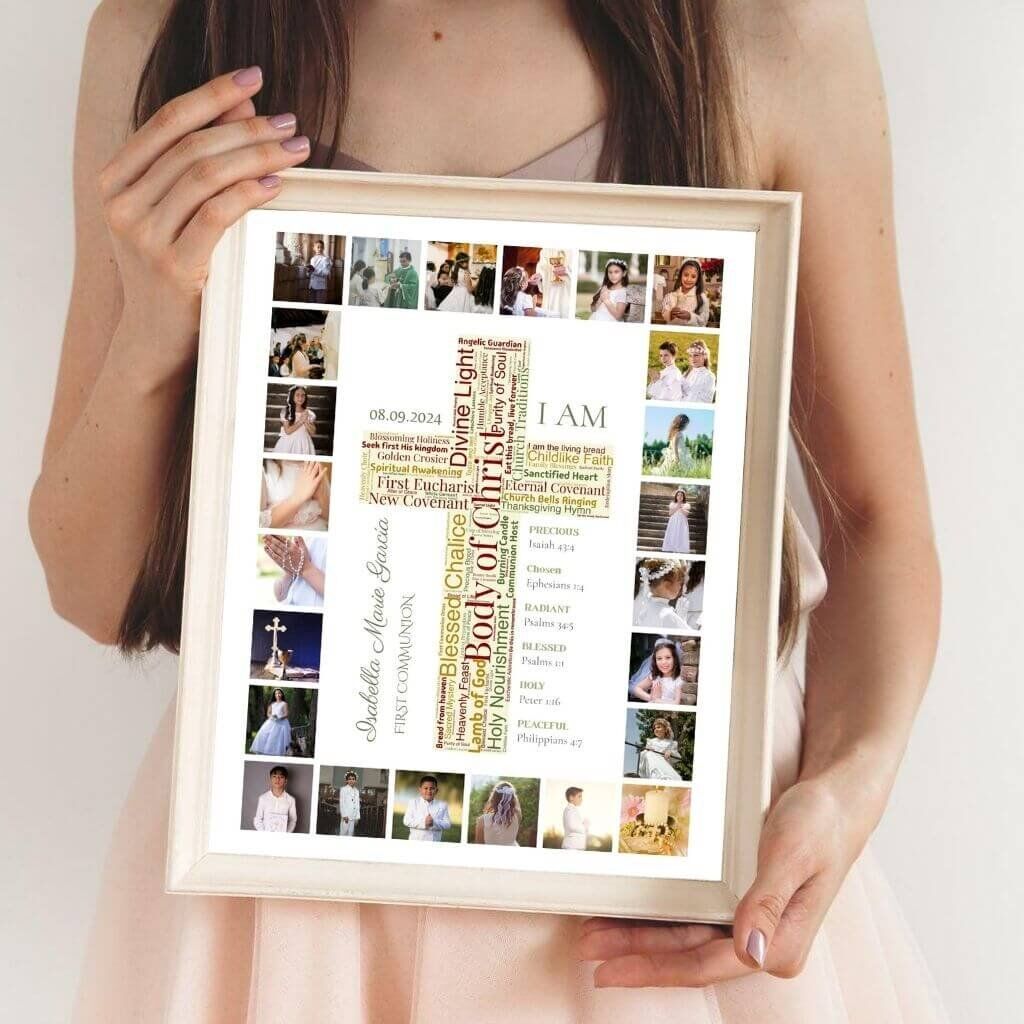 Celebrate your child’s sacrament with this divinely inspired collage, fusing