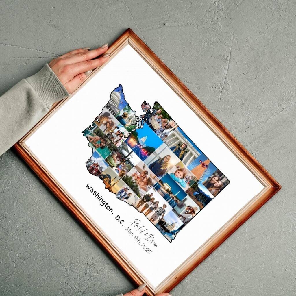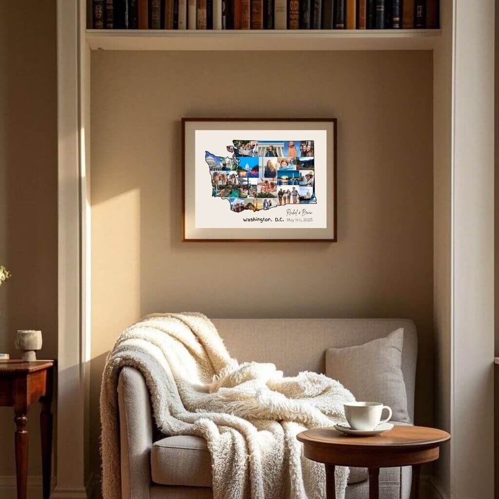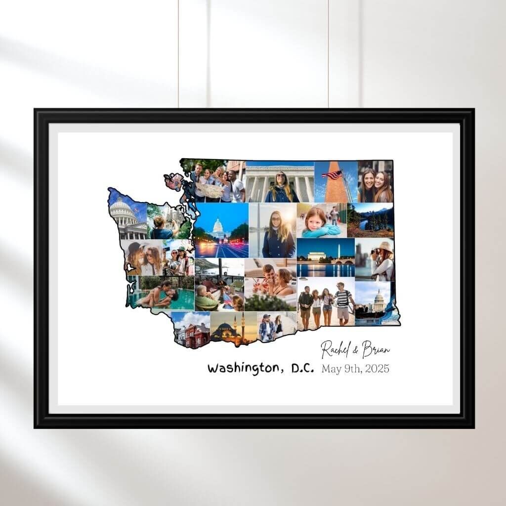 Designed by CollageWizard, the Washington map collage offers a timeless way to remember the places that matter most.