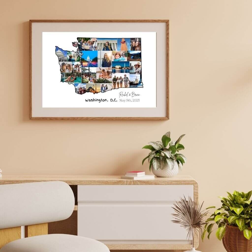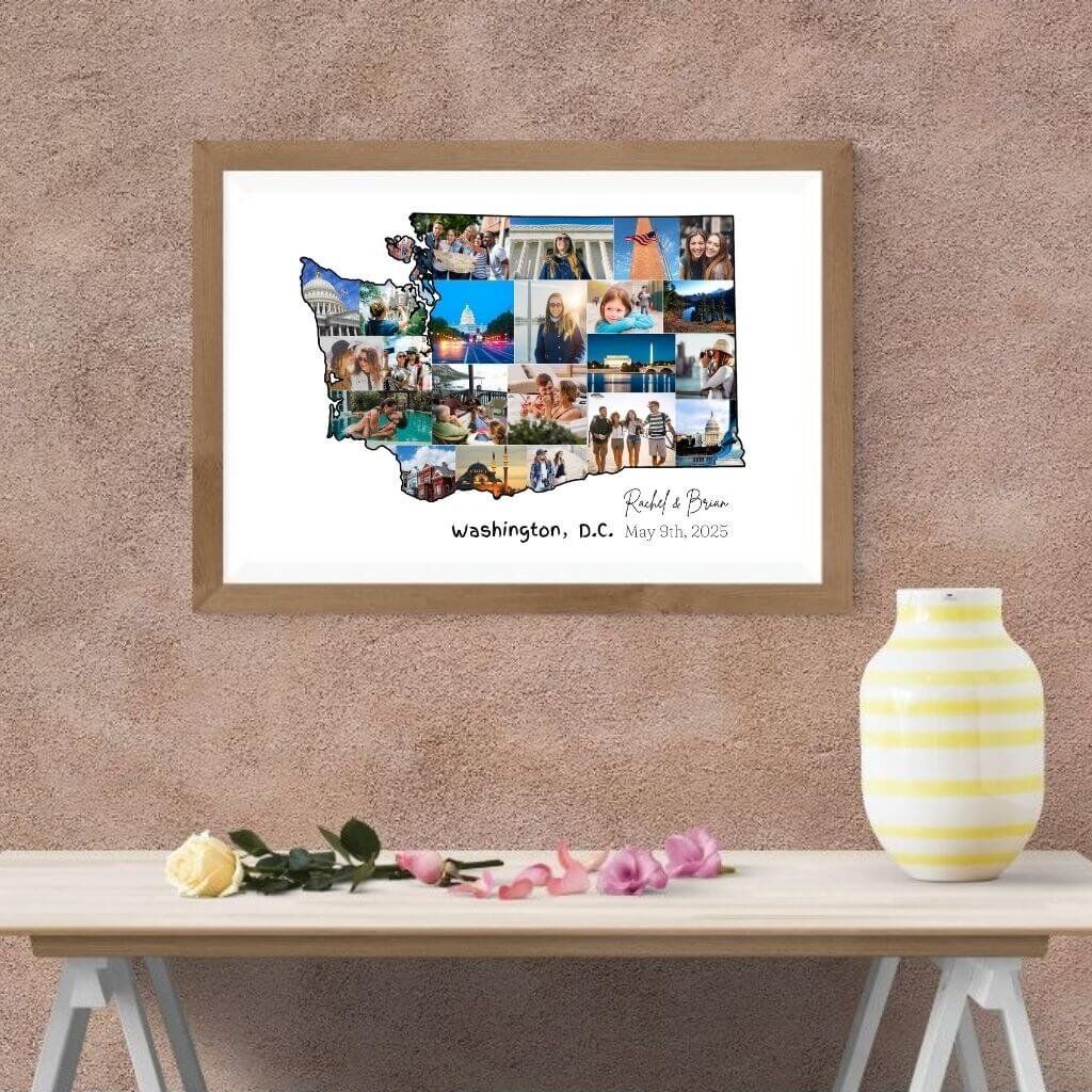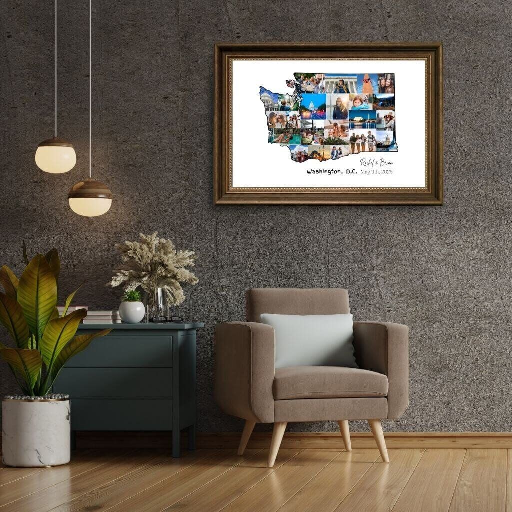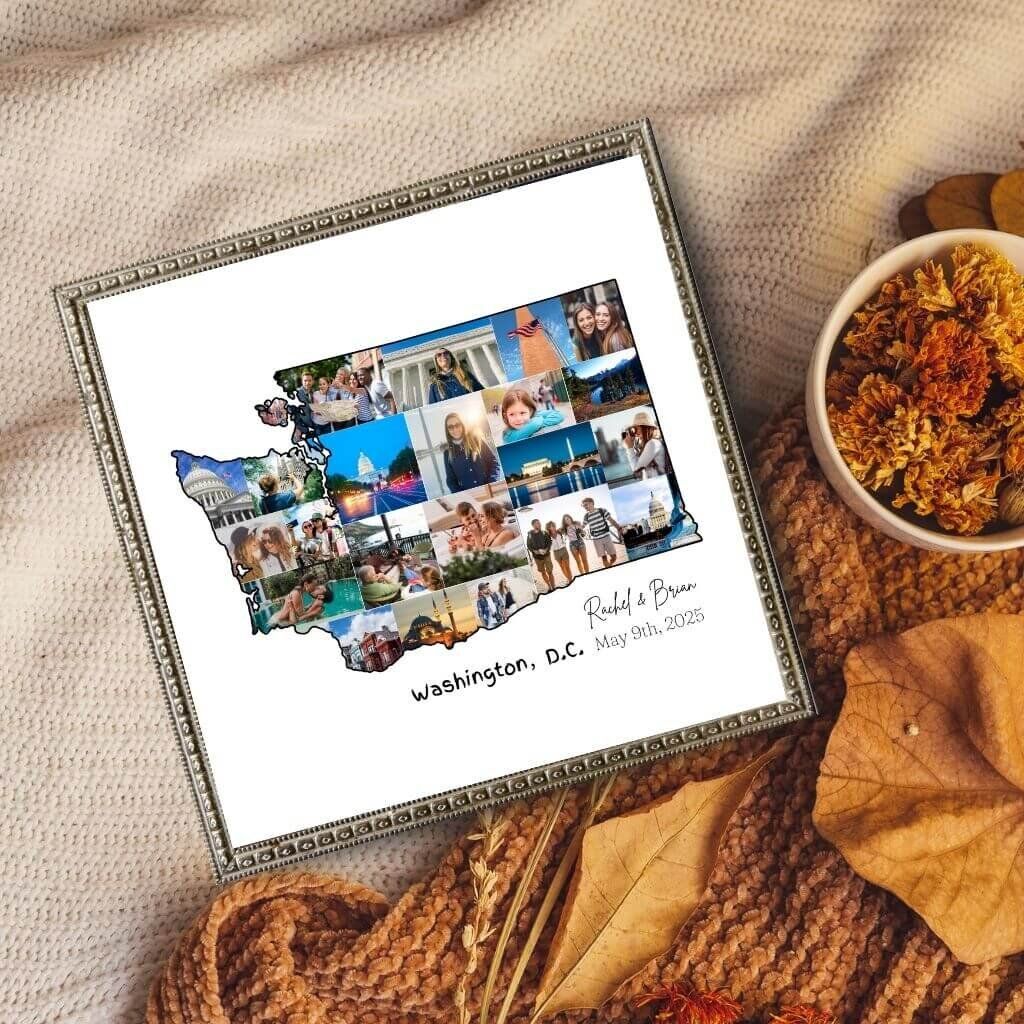 Designed by CollageWizard, the Washington map collage offers a timeless way to remember the places that matter most.